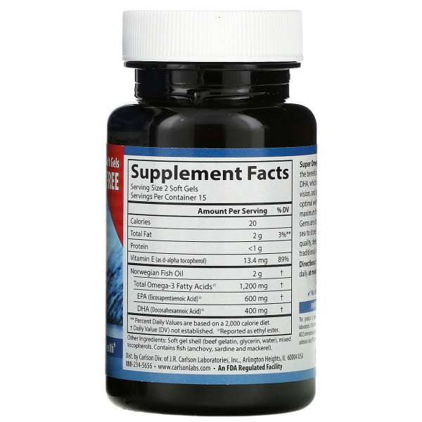Super Omega-3 от Carlson является надежным источником Омега-3 кислот, способствующих здоровью сердца, мозга и глаз, обеспечивая общее благополучие организма.