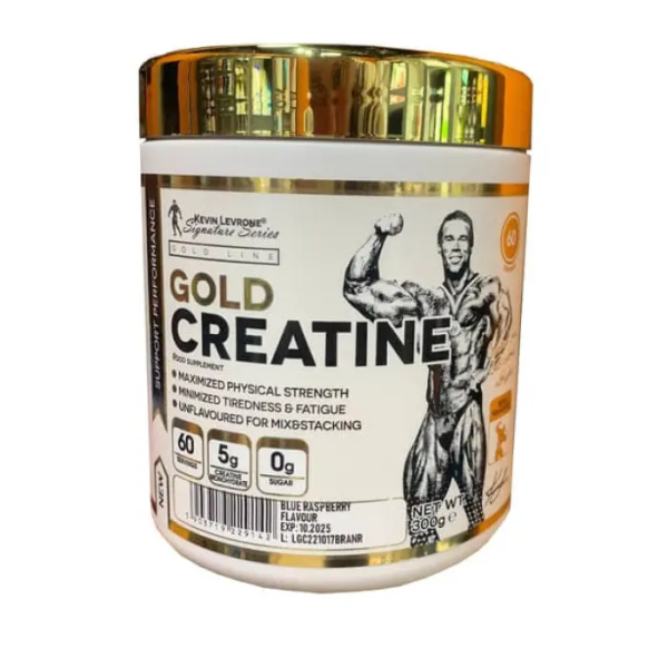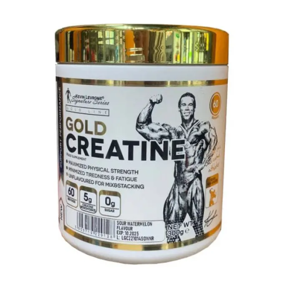 Kevin Levrone Gold Creatine - bu yuqori sifatli kreatin monohidratiga asoslangan parhez qo'shimchasi bo'lib, sportda yangi marralarni zabt etishga yordam beradi. Bu intensiv jismoniy faoliyat paytida ozg'in mushak massasini faol qurish uchun maxsus mo'ljallangan. Kevin Levrone Gold Creatine yuqori konsentratsiyali va 100% faol moddani o'z ichiga oladi. U organizm tomonidan oson va tez so'riladi, ATP sintezini kuchaytiradi, bu mushak tizimining ish faoliyatini yaxshilashga yordam beradi, mashg'ulotlarning davomiyligi va sifatini yaxshilaydi va kerakli raqamni yaratish vaqtini qisqartiradi. Bundan tashqari, u mushak to'qimalarida katabolizm ehtimolini kamaytiradi va mashqdan keyin regeneratsiyani yaxshilaydi.