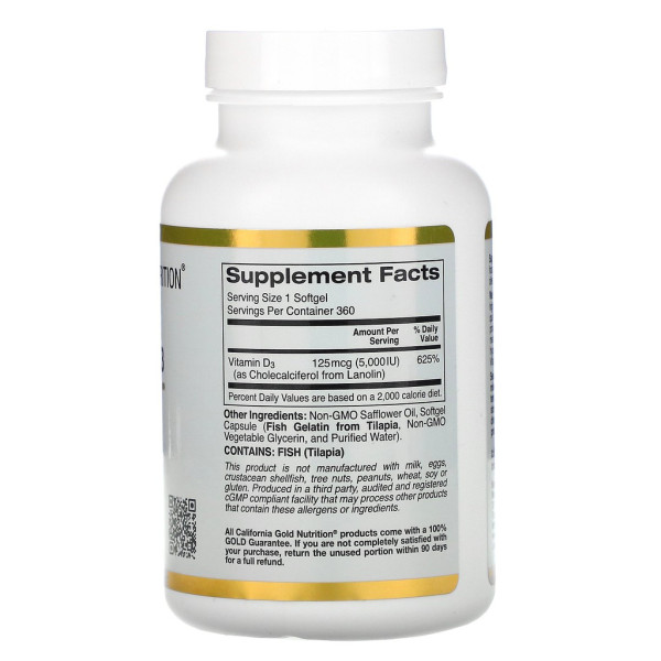 Vitamin D3 125 mcg (5000 IU) 360 Fish Gelatin Softgels